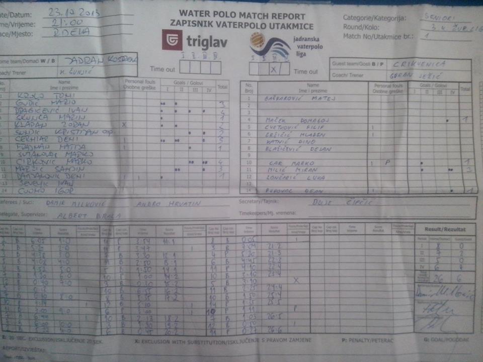 VK JADRAN – VK CRIKVENICA 26:6 (8:0, 7:2, 5:0, 6:4)
