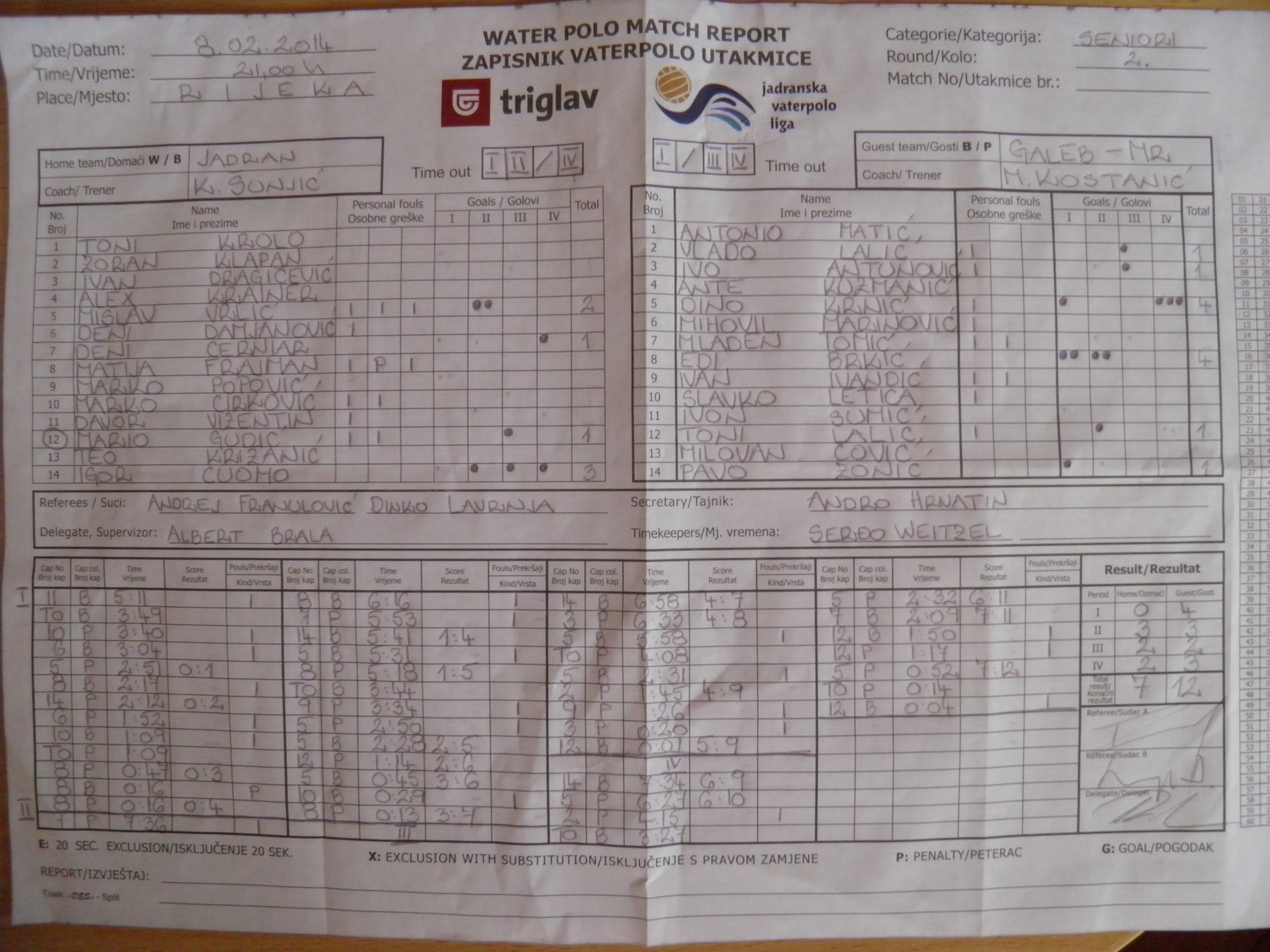 VK JADRAN – VK GALEB 7:12 (0:4, 3:3, 2:2, 2:3)