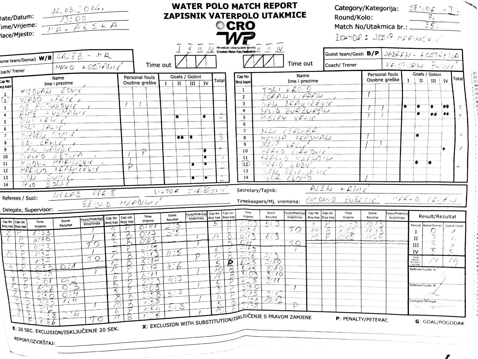 Novosti Pobjeda u Makarskoj! Posted 15.03.201415.03.2014 Sanjin Maržić U 7. kolu izborili smo prvu ovosezonsku pobjedu i to protiv trenutno vodeće ekipe Galeba. Utakmica u Makarskoj završila je rezultatom 11-14 za Jadran. Ovom pobjedom se nakon nepotpunog 7. kola nalazimo na 4. mjestu skupine Jug. Uskoro više…